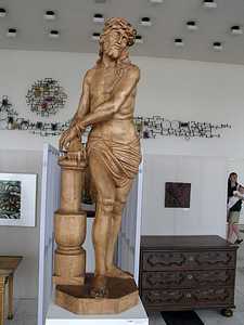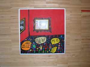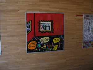 V pravém smyslu slova, je to ale myslím případ budějovického Domu Umění, kde ve stejný čas, jen na opačném konci čtvercového náměstí byl k vidění jiný jihočeský malíř - Petr Písařík a jeho obrazy a objekty. Zasloužil by ale vyzpovídat tenhle v Praze naturalizovaný Třeboňák. Co znamená název výstavy "Domá ni"? Proč k sobě svazuje židle, když se na nich pak těžko sedí? Zastupuje-li v jeho očích samolepící srdíčko popisku k obrazu, kam se má obrátit divák, pro kterého nikoli? Quo Vadis Pietro? Nicméně výstava silná, posuďte sami: